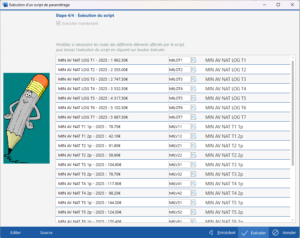 Pour mettre en place les valeurs 2025, nous vous proposons l'exécution d'un script. Vous devez pour cela avoir clos les payes de décembre.