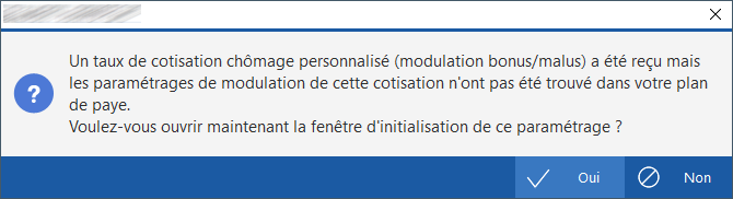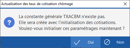 Sur le premier, il vous faut répondre Oui au message suivant pour ouvrir l'étape de paramétrage des cotisations :