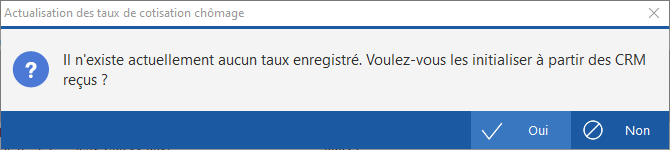 A ce stade, les paramétrages sont faits, il ne reste donc qu'à inscrire les taux. A la 1ère ouverture de l'outil (et après l'étape ci-dessus le cas échéant), aucun taux n'a encore été paramétré, répondre donc Oui au message suivant pour affecter automatiquement les taux modulés réceptionnés sur chaque société concernée :