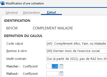 Vous pouvez vérifier que les nouveaux seuils s’appliquent dans la configuration des deux cotisations “compléments”.