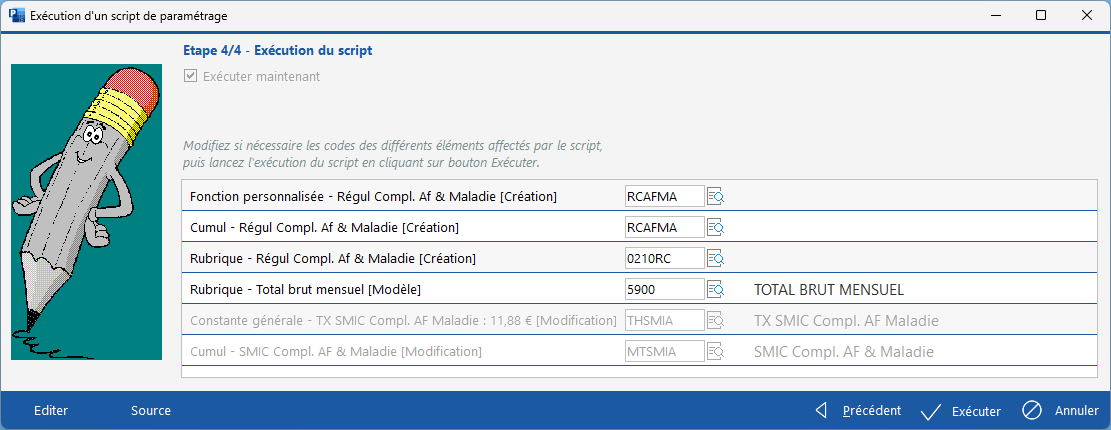 Pour prendre en compte ces nouveaux paramètres mais également pour régulariser la réduction, puisque les calculs en début d’année ont, par la force des choses, utilisé les anciens seuils et l’ancienne valeur du SMIC, nous vous proposons d’exécuter un script :