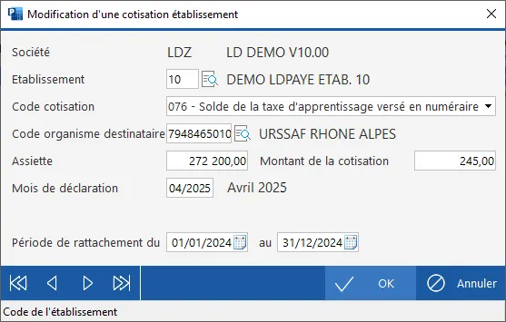Code cotisation : 076 - Solde de la taxe d'apprentissage versé en numéraire