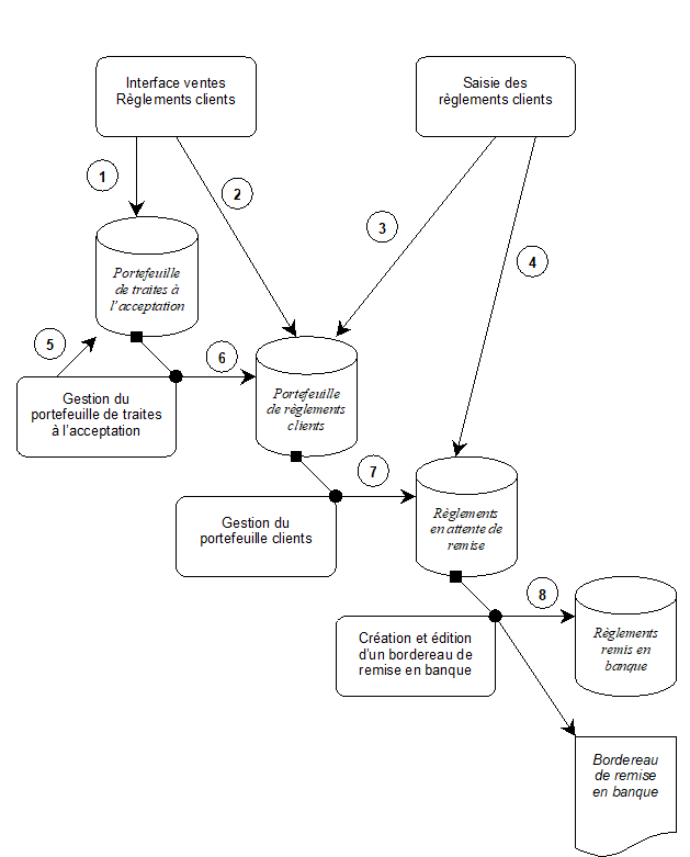 Préparation d’une remise en banque depuis la gestion du portefeuille de règlements clients |