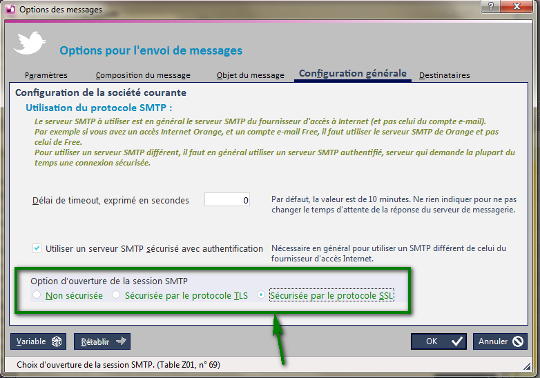 Mise en œuvre d'une 3ème option permettant d'ouvrir une session SMTP sécurisée par SSL.