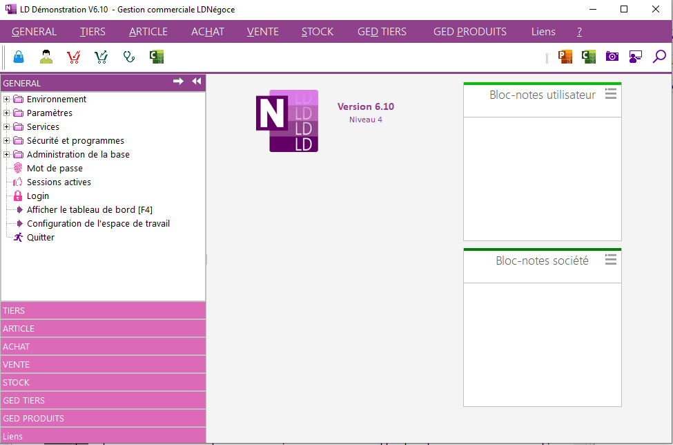 Une nouvelle possibilité d'affichage des menus vous est offerte avec la version 6.10 : un affichage de toutes les options rangées par volet, en plus du menu traditionnel Windows.
