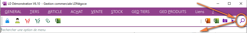 Un champ de saisie s'affiche alors juste sous la barre d'outils, champ dans lequel on frappe les critères de recherche de l'option à lancer.