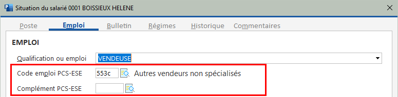Dans LDPaye, les champs de saisie qui sont contrôlés par rapport à ces nomenclatures externes se présentent ainsi :